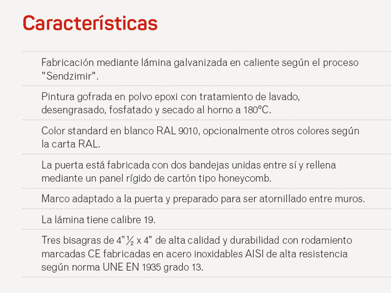 Este modelo de puerta abatible está especialmente indicado para lugares que precisen de altos niveles de seguridad y fiabilidad como lo son viviendas, supermercados, cines fábricas, hospitales, salas de espectáculos, bibliotecas, discotecas, hoteles, etc.